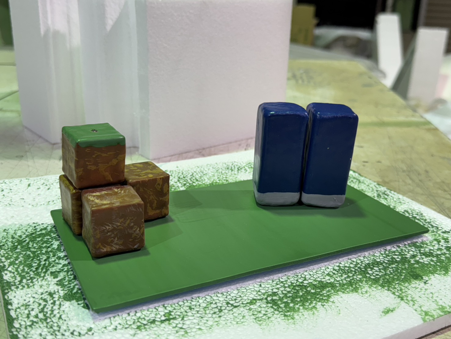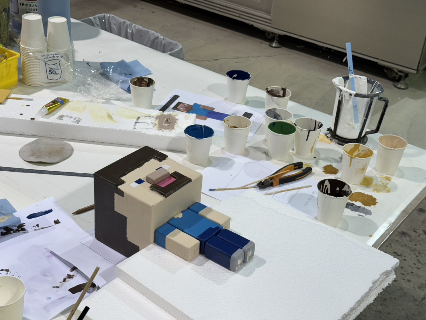 弊社では立体造形(立体看板)をつくる部署がありますので、そこで立体造形物を発泡スチロール原型で作ってもらいました。