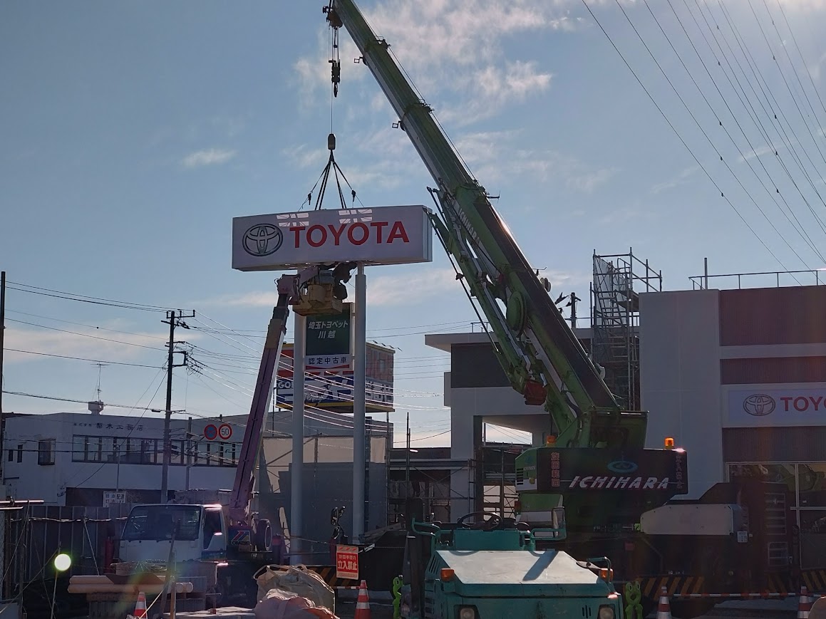 先週1月10日に埼玉トヨペット川越支店様の大型のサインポールを設置致しました。