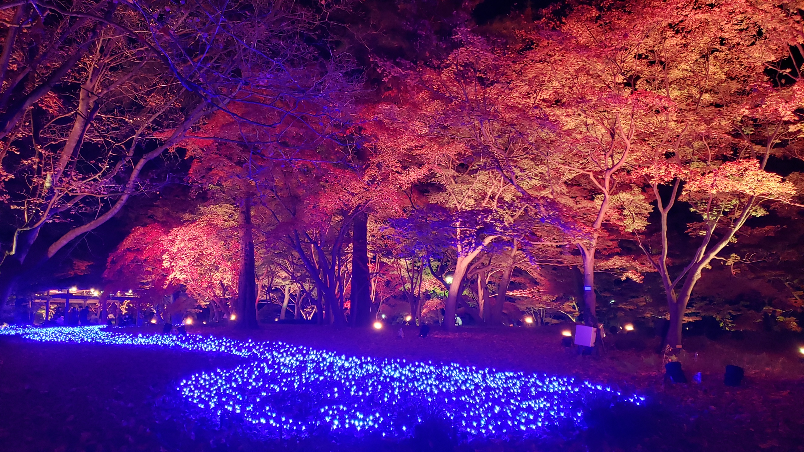 秋&冬の風物詩である紅葉とイルミネーションを一緒に楽しめるということで愛犬を連れて武蔵丘陵森林公園に先日(11/23)行ってきました。